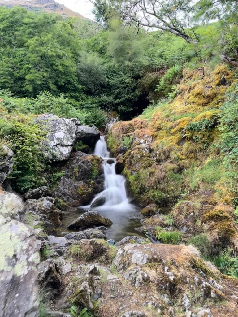 Once you are through the gate you will be walking along a narrow path lined with bracken on either side of you. The path was quite muddy on the day I went so make sure you wear suitable shoes. You will go through a couple of gates before you reach a very small waterfall on your left hand side.