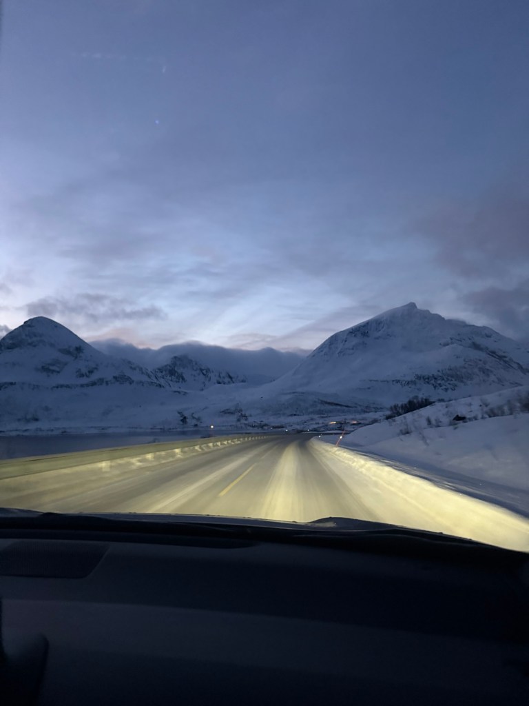 After picking up our hire car in Tromsø, we set off north towards Skjervøy. The drive took around four hours. There were quicker routes involving ferries, but we preferred not to depend on ferry schedules so we stuck to the road the whole way.