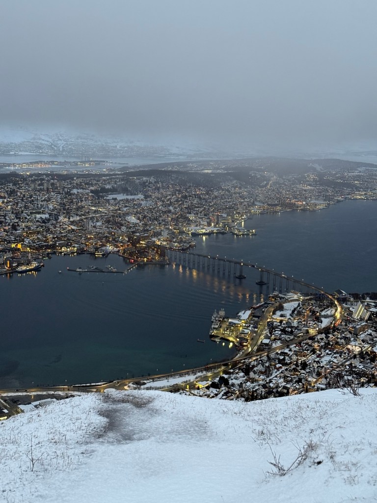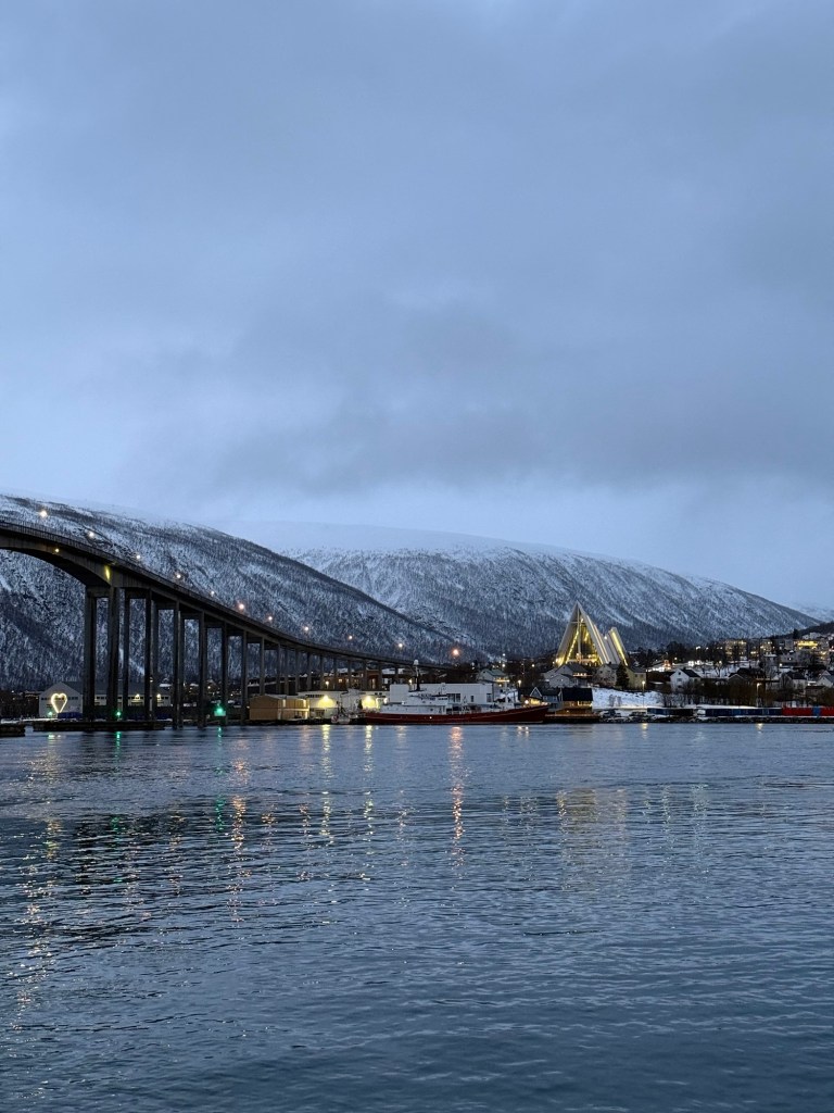 We flew in on the 19th December – right in the middle of Norway’s Polar Night, when the sun doesn’t rise above the horizon in Tromsø. Because of this, you’ll still get a few hours of a bit of blue tinged light around late morning to early afternoon, but most of the day feels quite dark. It definitely felt strange at times like we should to be in bed, but it was still such an amazing time to visit – especially for spotting the northern lights.